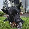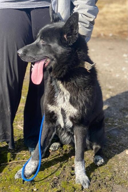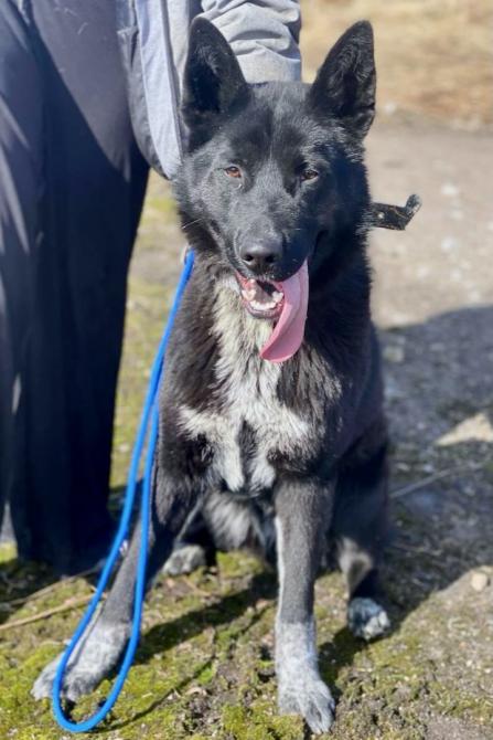 Komea mustaturkki Erik korjattiin talteen Viipurin laitamilla olevalta kesämökkialueelta, missä on hiukan hienompiakin huviloita joukossa. Koiralla oli löydettäessä panta kaulassa ja se vaikuttaa hylätyltä tai eksyneeltä kotikoiralta.
