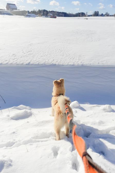 Alusta asti Fifa on osoittautunut reippaaksi nuoreksi koiraksi. Ulkoilu sujui hienosti muiden koirien esimerkkiä seuraten, vaikka alkuun ulkomaailma hieman jännittikin. Jännitys kuitenkin karisi nopeasti, kun tutkittavaa riitti.