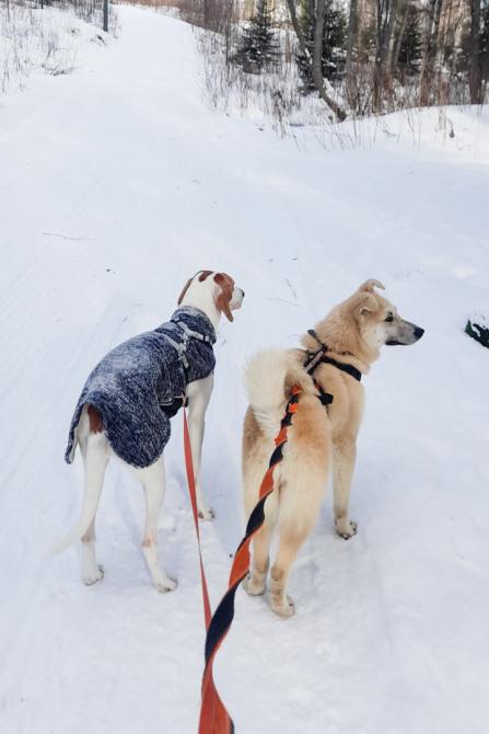 Fifa on myös tavannut ystävien koiria, joiden kanssa lenkkeily on sujunut hienosti. Uudet tuttavuudet otetaan vastaan hillitysti ja kohteliaasti.