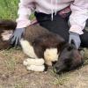Gita pääsi Suomeen! Sirokokoinen valkosukka Gita tutustui uteliaasti ihmisiin luovutuksessa ja lähti luottavaisin mielin hoitopaikkaan Varsinais-Suomen suunnalle harjoittelemaan kotikoiran taitoja.