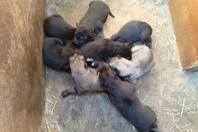 Pentuja oli alun perin kahdeksan ja ne viettivät mukavan kesän telmien huolettomina yhdessä pihamaalla. Syksyn lähestyessä alkoi kotien löytymisellä kuitenkin olla jo kiire, sillä datshan asukkaiden tarkoitus palata kaupunkiin kesäkauden jälkeen. Pennuista ne, jotka olivat perineet emoltaan siniset silmät, onnistuivat löytämään paikalliset kodit. Loput päätyivät Svetogorskin tarhalle sen jälkeen, kun alueella toimivat vapaaehtoiset ottivat Elenaan yhteyttä. Vaikka H-pennut päätyivätkin löytökoiratarhalle, eivät ne ole varsinaisia löytökoiria sillä ne päätyivät tarhalle suoraan synnyinkodistaan. Emokoira saatiin vapaaehtoisten toimesta steriloitua niin, ettei se enää synnyttäisi ei-toivottuja pienokaisia.