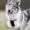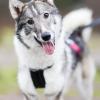 Hyrrä on vielä pentu ja sen arvellaan olevan alle vuoden ikäinen, ehkä noin 8-9 kuukautta. Punnitsimme Hyrrän ja painoa oli 14 kiloa, korkeutta 50 cm. Hyrrä voi tästä vielä jonkin verran kasvaa, mutta se jää aikuisena siroksi keskikokoiseksi.