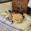 Meillä ei ole pentujen taustasta tarkempaa tietoa. Ne ovat saattaneet syntyä ulos tai sitten päätyneet sinne ihmisen toimesta. Aivan ihmisiin tottumattomia ne eivät ole. Ne ilahtuvat tutuista ihmisistä, ottavat omaehtoisesti kontaktia ja hakeutuvat näiden luokse. Jännityksestä huolimatta niitä on myös helppo käsitellä, mutta isoimmat pennuista alkavat jo painaa ihan kiitettävästi ja niiden kanniskelu tarhan alueelta ulos ja takaisin sisään saa yhden jos toisenkin hikikarpalon otsalle. Pentujen perimästä saattaa löytyä ripaus huskya, mutta joukossa on varmasti muutakin.