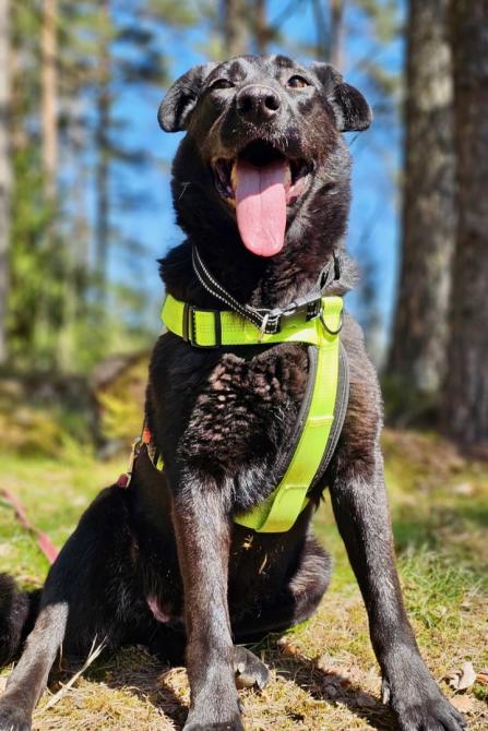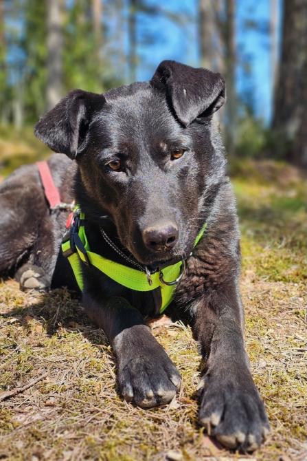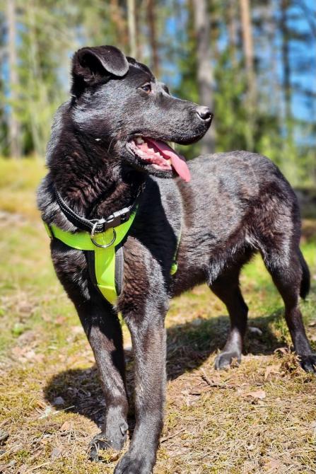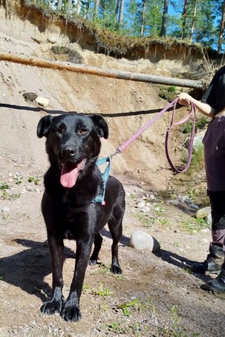 Ihmisrakas ja ystävällinen Irma on viettänyt Elenen tarhalla jo kohta kaksi vuotta. Mustaturkkinen, eksyneen oloinen koira löytyi harhailemasta yksinään Krasnoselskojesta (ent. Kyyrölä).