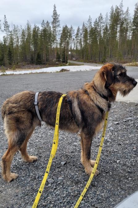 Jalmari on jo hienosti osannut tulla kutsuttaessa luokse ja antaa käsitellä kiltisti. Suihkussa käymisestäkin selvittiin kunnialla. Hihnassa käveleminen sujuu Jalmarilta nätisti. Jalmarin hoitopaikka on hyvin rauhallisella alueella, missä ei lenkkipolulla tule juurikaan muita koiria tai ihmisiä vastaan. Kovat äänet ja isot koneet ovat Jalmarista selvästi pelottavia.