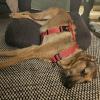 Jella on oppinut luottamaan kotihoitoperheen molempiin aikuisiin ja perheen rauhalliseen 11-vuotiaaseen lapseen. Jella hakee rapsutuksia ja huomiota, mutta osaa myös rauhoittua.