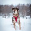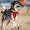 Ensimmäinen yö oli Jimille vaikea mutta sen jälkeen on ollut tosi reipas! Ulkoilu sujuu Jimillä hienosti ja huomaa, että tätä on tarhalla harjoiteltu lukuisat kerrat. Jimi ottaa paljon kontaktia ihmiseen ja seuraa toista koiraa, jos joku asia jännittää. Ajoneuvot, vastaan tulevat ihmiset tai polkupyörät eivät Jimiä pelota. Vastaantulevat koirat saattavat jännittää, jos ne haukkuvat, mutta hiljaisia kavereita Jimi menisi mielellään moikkaamaan. Valjaiden laittokaan ei voisi olla helpompaa: Jimi pujahtaa itse niiden sisään, kun ne ottaa käteen!