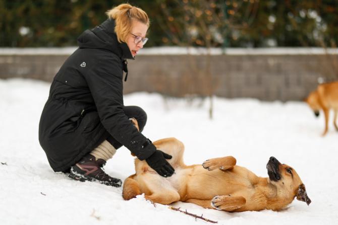 Kendra lähtee mielellään lenkille edellyttäen, että sekä hoitotäti että Karla-sisko ovat mukana matkassa. Kendra ei pelkää miehiä, mutta ei kuitenkaan uskaltaudu ulkoilemaan hoitopaikan miehen kanssa. Todennäköisesti Kendra on joutunut löytökoiratarhalla toisen koiran puremaksi. Ei siis ihme, että vastaantulevat koirat pelottavat. Pelko purkautuu voimakkaana hihnassa rimpuiluna. Myös lapset ja lastenvaunut herättävät jännitystä samoin kuin kovat äkilliset äänet. Lastenvaunuihin liittyvästä jännityksestä eroon pääsyä harjoitellaan aktiivisesti kotihoitajan ohjauksessa.