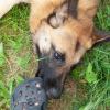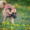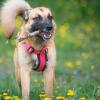 Tapasimme Ksenjan ja sisarukset jälleen pääsiäisenä. Tavoitteenamme oli saada kaikki pennut hihnaan ja harjoittelemaan hihnassa kävelyä tarhan ulkopuolella. Suloinen Ksenja osui hetkessä silmiin, kun se juoksi ympäri tarhan pihaa muiden koirien joukossa. Ihmisiin se ei alkuun ottanut kontaktia ja valjaiden pukemiseen piti pyytää Elenalta apua, niin vikkelästi Ksenja juoksi valjailla varustautunutta vierasta piiloon. Kun valjaat oli saatu puettua päälle lähti Ksenjakin sylikyydillä siskonsa kanssa samaan aikaan ulkoilemaan.