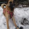 Tarhan läheiselle pellolle päästyämme Ksenja oli jonkun aikaa lamaantunut ja seisoi paikoillaan. Sitten jotain kuitenkin tapahtui ja se alkoi heiluttamaan häntäänsä ja ottamaan askeleita ihan omin jaloin. Siellä se sitten haisteli lumista maata, söi herkkuja ja häntä varovasti vispaten vastaanotti rapsutuksia. Ihana tyttö. Rohkeus ei riittänyt tien vieressä kävelyyn ja pellolta palattiinkin tarhalle jälleen ihmisen sylissä. Se oli todennäköisesti ensimmäistä kertaa ikinä valjaissa ja hihnassa ja siihen nähden suoritus oli mahtava. Kunpa pian harjoitukset voisivat jatkua omassa kodissa, turvallisen ihmisen seurassa.