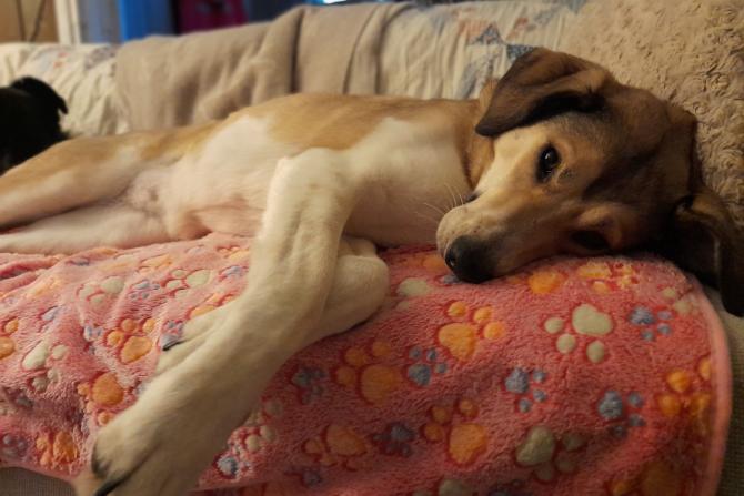 Lara on viettänyt jo reilut neljä kuukautta kotihoidossa, ja siinä ajassa ujosta sivustaseuraajasta on kuoriutunut kaikkeen tekemiseen innokkaasti osallistuva kotikoira.