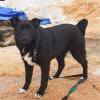 Pieni musta Mandi oli viimeinen seitsemän pennun joukkiosta, joka matkusti Suomeen.