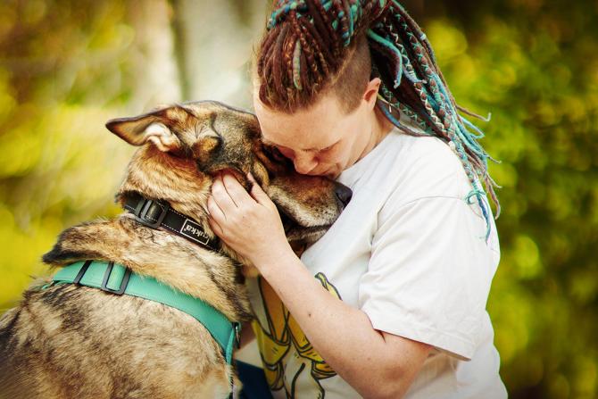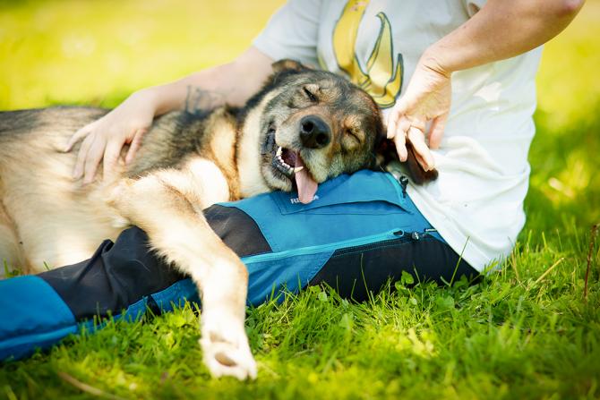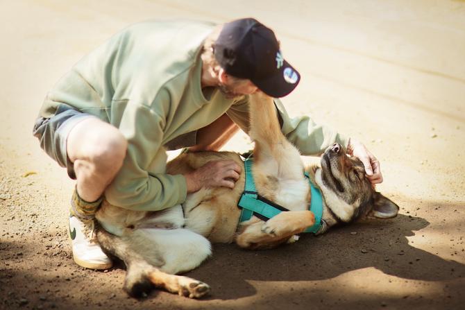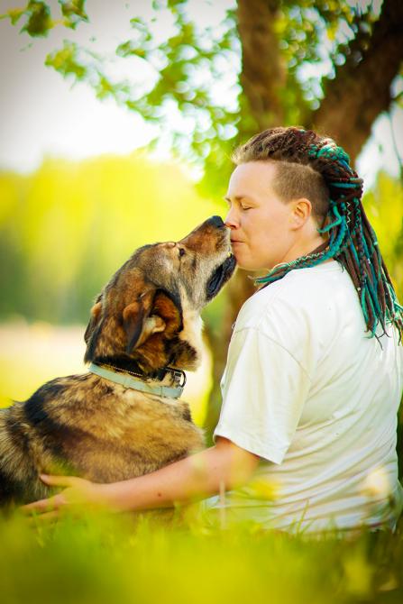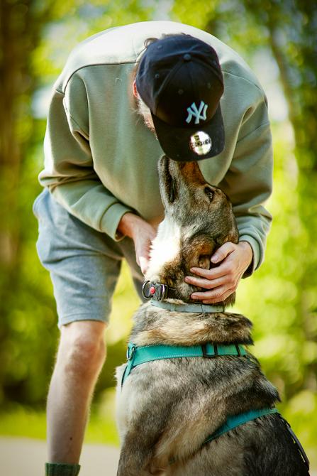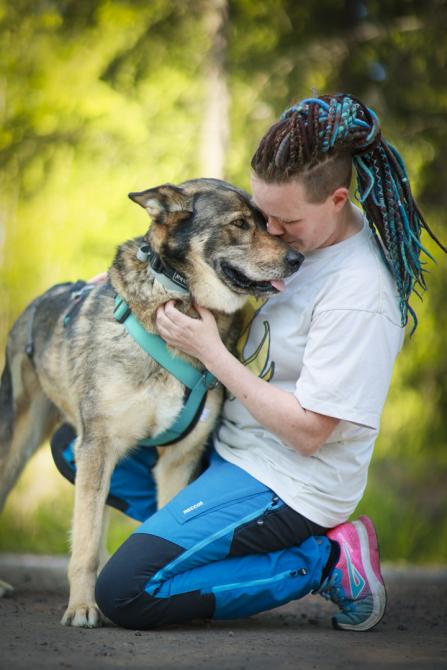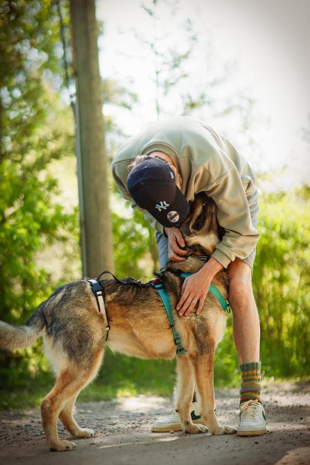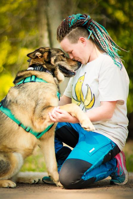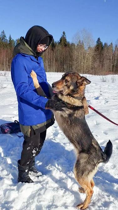 Manjan olemuksessa ei ollut tippaakaan epäluuloa silloinkaan, kun vieras mies lampsi hoitopaikan edustalle. Manja spurttasi suoraan miehen jalkoihin ja jakoi pusuja sellaisella antaumuksella, että parta sai kunnon spa-hoidon.