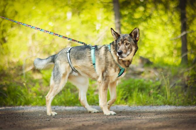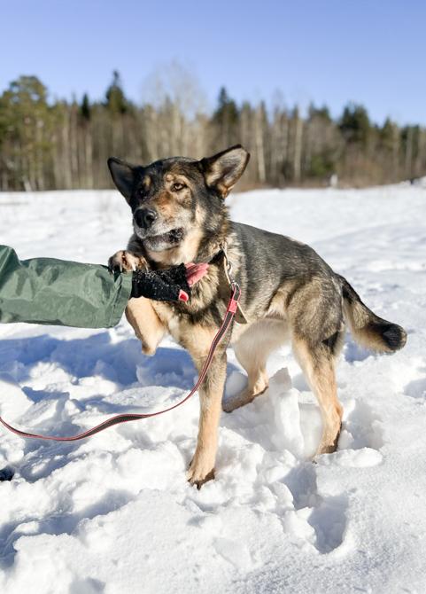 Lenkillä Manjalla onkin sitten vauhdikkaampi meininki eikä vaarallisiltakaan tilanteilta olla vältytty. Lenkit Manja on ensimmäisiä päiviä lukuunottamatta kulkenut valjaissa ja 10 metrin liinassa, toki panta myös kaulassa ja hihna varmuuden vuoksi mukana. Hoitaja on ottanut tavaksi pysähtyä risteyksissä, kutsua Manjan luokse ja jatkaa matkaa vasta, kun Manja on malttanut istahtaa syömään nakin palan. Näin Manja oppii, ettei matka jatku vetämällä, vaan tekemällä yhteistyötä ihmisen kanssa. Jos näin iso ja voimakas koira ei koe hyödylliseksi kuunnella ihmistä, päätyy hihnan ihmispää pian pelkäksi matkustajaksi. Manjalla todella on voimaa ja se myös halutessaan käyttää sitä: kiinnostaville hajuille se vetää nelivedolla, jolloin hoitaja saa laittaa kaikki voimansa peliin, jos Manja on päättänyt haluta johonkin.