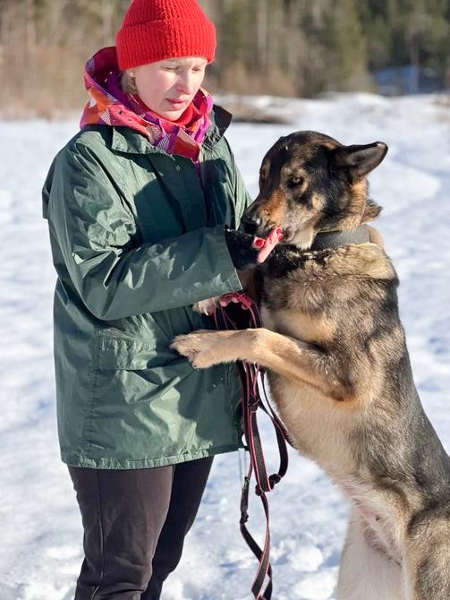 Saksanpaimenkoiratyyppisen Manjan perimästä voi löytyä vaikka mitä, mutta ei voi sulkea pois etteikö siinä olisi jotain laumanvartijarotua. Ne ovat kuitenkin Venäjällä hyvin yleisiä, ja Manja kookas ja voimakas tyttö.