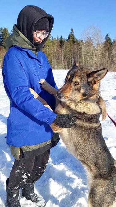 Ikäväksemme emme ole vielä rajasulusta johtuen päässeet tapaamaan itse Manjaa, mutta Snezhanna kertoo sen olevan hyvin ihmisrakas koira. Hihnassa kulkeminen sujuu Manjalta mallikkaasti. Manja vaikuttaa varsin luottavaiselta ja avoimelta koiralta, jolla on saattanut joskus olla kotikin. Manja jakaa saman aitauksen kahden muun koiran kanssa ja yhteiselo sujuu hyvin.