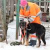 Miio jakaa aitauksen kahden sitä vanhemman uroksen kanssa. Se ei erityisemmin hakeudu niiden seuraan vaan nyhjää yleensä yksinään jossain. Olemme tarkkailleet reissuillamme joutuuko Miio aitauksessa niiden kiusaamaksi, mutta emme ole nähneet konfliktien syntyvän. Snezhannan mukaan Miio saa syödä ruokansa rauhassa, mutta olemme pyytäneet varmistamaan tämän sekä sen, että se saisi enemmän syödäkseen. Voi vain kuvitella, kuinka rankka koettelemus talvi on laihalle Miiolle ollut. Miion askellus on kankea ja sen lihaksisto olematon. Se on suurehko koira, joka painaisi normaalipainoisena reippaasti yli 30 kiloa.