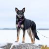Hihnalenkkeily sujuu näin kesäaikaan mukavasti, kun luonnossa pääsee helposti kulkemaan. Haasteita oli erityisesti jäisillä talvikeleillä, jolloin hoitaja oli yhden jos toisenkin kerran nurin tiellä tai penkassa. Teiden varret, ne rauhallisemmatkin, jännittivät Miioa ja sillä oli tapana tehdä pikainen u-käännös ja hypätä päin taluttajaa turvaa hakien. Kesäaikaan Miio on saanut ulkoilla paljon metsässä, jolloin Miio on rennompi, mutta hyppiminen ei ole kokonaan jäänyt pois. Muuten Miio kyllä kulkee hihnassa nätisti, ei rähjää vastaantuleville koirille eikä ihmisille.