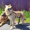 Muutama kuukausi on vierähtänyt tarhalle muuton jälkeen ja pentuaitauksessa on riittänyt vilskettä ja vipinää. Tällä hetkellä pentuja on tarhalla niin paljon, että leikkikavereista ei ole ollut pulaa. Sisarukset ovat tuoneet turvaa ja seuraa yksitoikkoisiin päiviin. Hihnakävelyn alkeita Mila on päässyt harjoittelemaan kertaalleen, kun se sisaruksineen maaliskuun puolivälissä puettiin ensimmäistä kertaa ikinä valjaisiin ja otettiin tarhan aitojen ulkopuolelle jaloittelemaan. Ilme muuttui hieman vakavaksi, kun tuttu pentuaitaus jäi taakse ja tarhan aitojen ulkopuolella olikin isoja ja vieraita koiria tekemässä tuttavuutta. Vaikka Milaa jännitti uusi tilanne, oli se kuitenkin uteliaan kiinnostunut uusista asioista. Harjoittelu tekee mestarin, myös hihnakävelyn alkeiden oppimisessa!