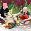 Olemme tehneet Mishkaan monesti tuttavuutta tarhalla, mutta helteisenä kesäkuun päivänä pojan ketju napsaistaan irti ja tilalle laitetaan hihna. On Mishkan vuoro päästä jaloittelemaan. Mishka kulkee hihnassa nätisti ja tottuneesti. Tarhan ulkopuolella elävä koirapari tulee oitis tarkastamaan kuka on tämänkertainen ulkoilutettava eikä Mishka pistä pahakseen uteliaasti nuuhkivia kuonoja ympärillään. Se suhtautuu ystävällisesti molempiin, sekä narttuun että urokseen. Mishka haluaa pian päästä jatkamaan matkaa ja autoista piittaamatta jolkottaa reippaasti kohti varjoista hiekkatietä. Ruohon maistelu, pusikoiden haistelu ja metsikön rauhalliset äänet ovat ihanaa vaihtelua tarhan kaaottisuudelle.