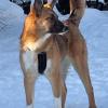 Hoitopaikan vaihdos ja uuden vuoden paukuttelu samaan syssyyn saivat Nuun mietteliääksi, mutta jo parin päivän päästä saimme nähdä iloisen ja läheisyydestä pitävän koiraneidin. Uteliaalla Nuulla on pilkettä silmäkulmassa, ja jo ensimmäisenä iltana se oli löytänyt uuden kodin lelut ja rauhoitteli itseään puruleluja jyrsimällä. Uusi lauma tuli tutuksi pian ja hoitajan sänkykin löytyi lempipaikaksi nopeasti. Nuu uskoo lauman vanhempia koiria, vaikka sinnikkäästi yrittääkin saada näitä leikkimään kanssaan.