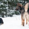 Koko porukka pääsee kanssamme kävelylle yhtäaikaa ja liikkuu sinne tänne sinkoilevana, toisiinsa törmäilevänä ja toisiansa tallaavana muodostelmana. Maailmassa on niin paljon nähtävää ja haisteltavaa, ja käytössä niin vähän aikaa! Vaikka tämä nelikko tykkää kovasti ihmisistä, on myös koiraseura niille tärkeää. Kovin kauas ei sisko tai veli saa päästä ennen kuin muut jo kiskovat hihnassa samaan suuntaan. Näille innostuneille ja aktiivisille nuorille toivoisi niin kovin omaa kotia ja pääsyä pois tarhalta. Vaikka kaikki neljä ovat reippaita, tuntuu toisen koiran mukanaolo niille niin tärkeältä, ettemme ainakaan toistaiseksi sijoita niitä ainoaksi koiraksi. Lapset sen sijaan ovat ok, eikä 5-vuotias poika aiheuta niissä minkäänlaista hämmennystä. Niillä ei taida olla kovin suuria ehtoja tulevalle kodilleen, mutta seuraa ja yhteistä puuhaa pitää olla.