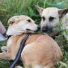 Sarai pääsi syyskuun lopussa kanssamme elämänsä toiselle hihnakävelylle. Mukaan lähti tuttu mutta lähes yhtä varovainen nuori narttu samasta aitauksesta. Sarai katseli osittain hämmentynein silmin ympärilleen, mutta paniikkiin se ei joutunut vaikka kiristyvä hihna tuntuikin pelottavalta. Enimmäkseen Sarai istuskeli ja katseli ympärilleen, välillä makasi ja tarkkaili kaverin turvallisen selustan vierestä tapahtumia. Pellon reunalla ei järin suuria tapahtumia koettu, mutta melkein ikänsä tarhalla asuneelle Saraille sielläkin riitti ihmeteltävää. Sarai päätti seurustelutuokion tassuttamalla ihan itse reippain pikku töppösin tien yli kohti tarhan portteja.