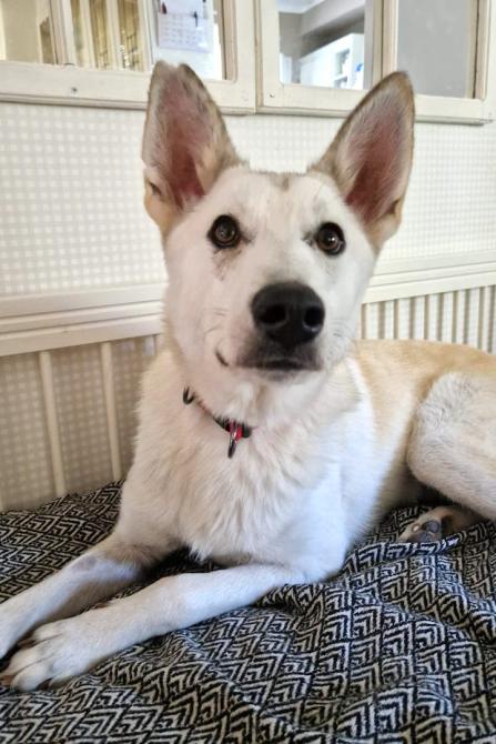 Kauniilla vaalealla turkilla varustettu Solmu on komea nuori koira, joka olisi aivan valmis muuttamaan omaan kotiin, omaa ihmistään ilahduttamaan. Solmulle etsitään kotia rauhalliselta asuinalueelta. Johdonmukaisessa ja lempeässä huolenpidossa Solmu voisi pärjätä ainoanakin koirana, mutta koirakaveri olisi tervetullut tuki uuden elämän aloittelussa.