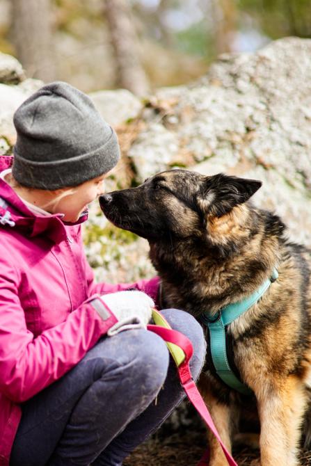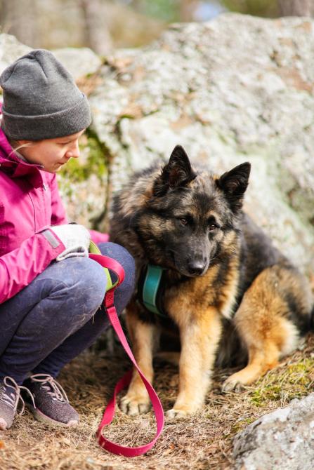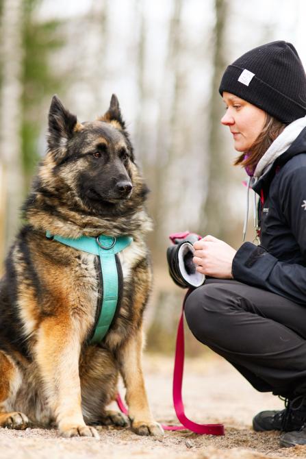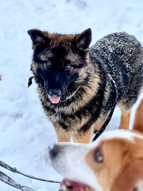 Tessa on ollut reipas ja innokas tutkimaan ympäristöään, vaikka myös pientä jännitystä on havaittavissa. Lenkillä käynti maalaisympäristössä on ollut mieleistä ja Tessa on rakastanut nuuhkia hajuja tien reunustoilla. Tessa ei ole haukkunut kertaakaan, mutta lempeä ”awuuu” on kyllä toisinaan kuulunut, kuin pyytäen ihmistä antamaan huomiota ja rapsutuksia. Leikkisämpi puoli alkaa Tessasta tulla esille, mikä onkin nuorelle koiralle toivottavaa.