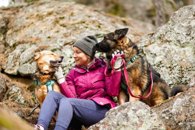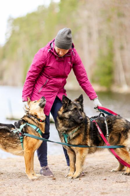 Vastaantuleviin koiriin Tessa on suhtautunut rauhallisesti eikä se naapureiden pihojen ohi kävellessä ole ollut moksiskaan, vaikka on ollut pihalla koiria haukahtelemassa. Toki Tessa hieman arastelee haukkuvia koiria, mutta se on aika yleistä tarhaoloissa kasvaneille koirille.