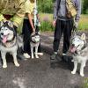 Pusikot vetävät koiria puoleensa ja hajut houkuttavat niitä tutkimaan tien pientareita. Thea käy heti molemmilla tarpeillaan aitauksesta päästyään, mikä viittaa siihen, että se on mahdollisesti sisäsiisti. Kukaan huskeista ei malta kävelyn aikana juurikaan keskittyä meihin ihmisiin, mutta ne ovat silti ystävällisiä. Harjaamme pahimmat irtokarvatupot Thean turkista, eikä sillä ole mitään toimenpidettä vastaan. Silittää ja koskettaa saa mistä vain. Thea luottaa kyllä.