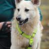 Toivo on reipastunut ja päässyt harjoittelemaan hihnakävelyä vapaaehtoisten kanssa.