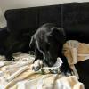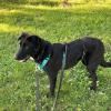 Komea musta Tucha-tyttö otti 10 päivää sitten ensiaskeleet Suomen puolella. Tucha on reipas pentu, joka kävelee hihnassa tottuneesti hoitajan omien koirien kanssa.